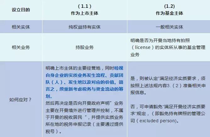 为解除欧盟对其所认定「缺乏经济实质」的担忧及使其脱离欧盟黑名单,每个司法管辖区均采取了不同的应对方案,以下是开曼群岛及英属维尔京群岛的应对方案:
