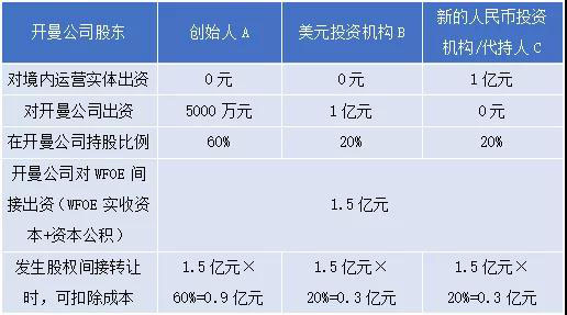 对于直接向开曼公司投资入股的各个股东来说,实务中税务机关一般会根据中国目标公司(WFOE)的实收资本及资本公积,按照各个开曼公司股东在中国目标公司(WFOE)中的间接持股比例分摊折算他们各自的股权转让成本。