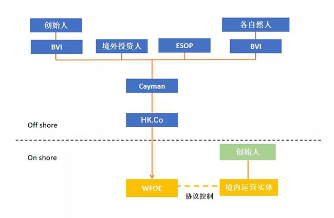 境外公司将募集资金以外债或资本金的形式打给WFOE,WFOE拿到外汇后,与境内运营实体之间签订合同,合同的内容根据双方之间的业务关系而定,有货物买卖合同、服务合同、知识产权转让或许可合同等。通过这些合同,WFOE与境内运营实体之间产生债权债务关系。