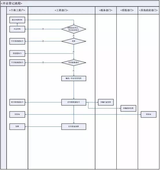 《意见》提出,按照“保留必需、合并同类、优化简化”的原则,整合优化申请、受理、审查、核准、发照、公示等程序,缩短登记审批时限。实行统一的登记条件、登记文书格式规范。申请人办理个体工商户注册登记时只需填写“一张表”,向“一个窗口”提交“一套材料”即可。工商行政管理部门受理申请并核准后,向个体工商户核发加载统一社会信用代码的营业执照,在国家企业信用信息公示系统进行公示,并与税务部门共享申请材料和审核信息,实现实时数据交换、档案互认。个体工商户的电子登记档案与纸质登记档案具有同等法律效力。