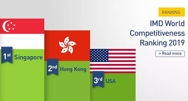 瑞士洛桑管理学院(IMD)公布《2019年全球竞争力报告》,有关竞争力报告是按:经济表现、政府效率、营商效率及基础建设等四项因素评分,对衡量一个国家、城市,有很重要的参考价值。