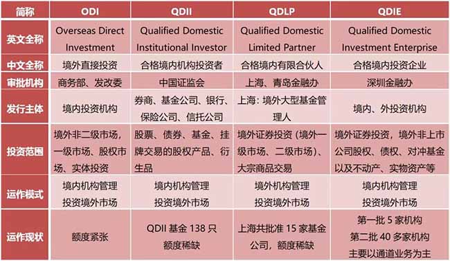 当前世界资本市场格局生变,海外投资再成金融圈最热的话题。在此背景下,投资者重点关注资金合法配置海外的渠道,比如ODI、QDII、QDLP、QDIE等该如何选择?我们一个一个来看。