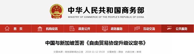 根据商务部新闻最新显示:中国与新加坡自由贸易协定升级议定书于10月16日生效!