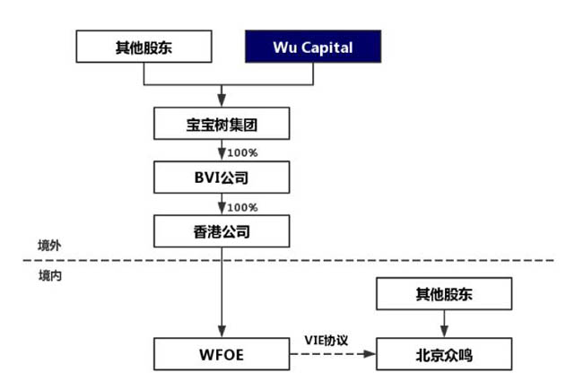 在近期赴港完成上市的新经济企业中,宝宝树集团通过重组搭建了VIE架构,其中注册在英属开曼群岛的宝宝树集团为境外融资平台及上市主体,北京众鸣世纪科技有限公司(简称“北京众鸣”)为境内VIE公司。