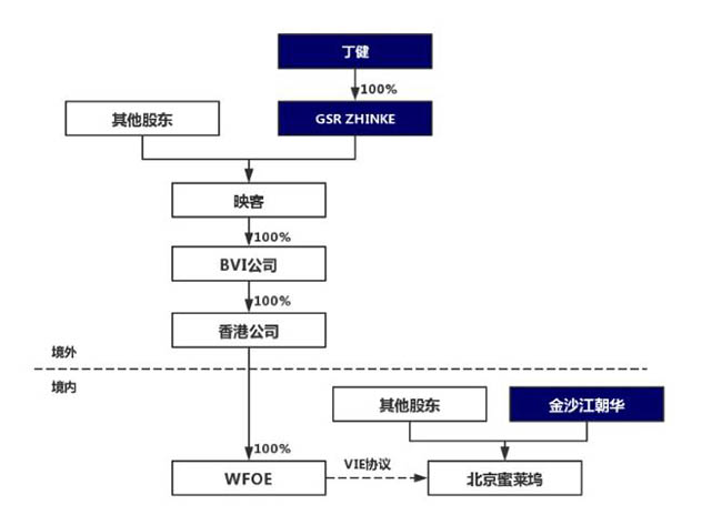 在近期赴港完成上市的新经济企业中,映客通过重组搭建了VIE架构,其中注册在英属开曼群岛的映客为境外融资平台及上市主体,北京蜜莱坞网络科技有限公司(简称“北京蜜莱坞”)为境内VIE公司。