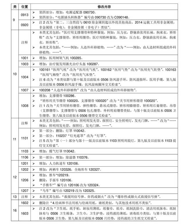 每一类有一个注释,对本类主要包括哪些商品,本类与相关类别的商品如何区别,如何划分边缘商品的类别作了说明,这个注释对划分一些易混淆商品的类别有很大帮助。