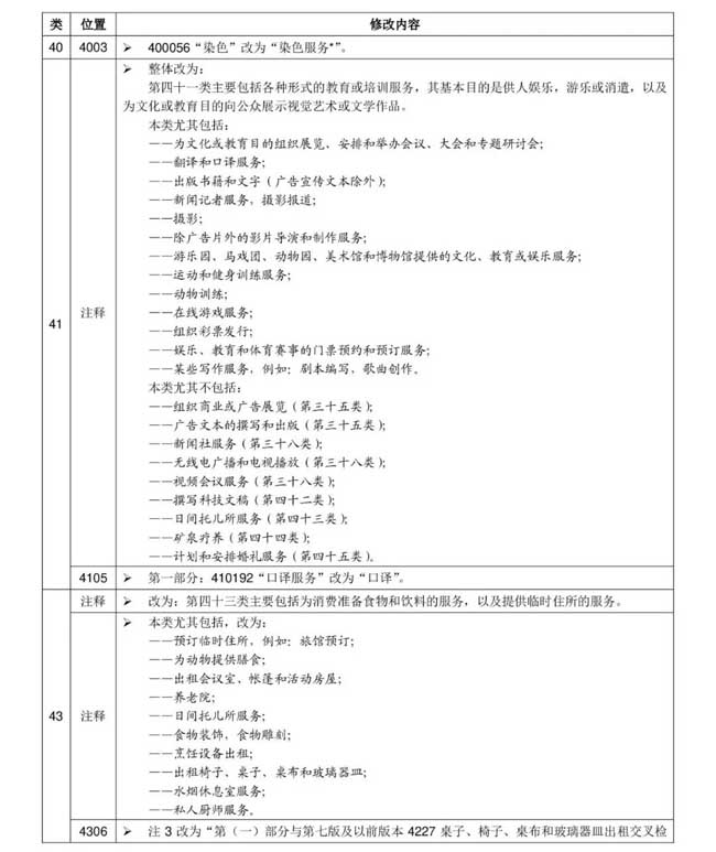 根据世界知识产权组织的要求,尼斯联盟各成员国将于2021年1月1日起正式使用《商标注册用商品和服务国际分类》(即尼斯分类)第十一版2021文本。申请日为2021年1月1日及以后的商标注册申请,在进行商品服务项目分类时适用尼斯分类新版本,申请日在此之前的商标注册申请适用尼斯分类原版本。以尼斯分类为基础,我局对《类似商品和服务区分表》作了相应调整,现将尼斯分类与《类似商品和服务区分表》的修改内容一并予以公布。