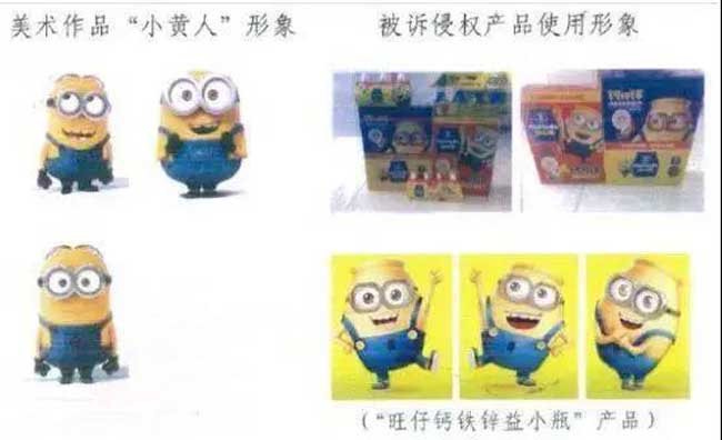 原告环球影画(上海)商贸有限公司(以下简称环球影画公司)因被告沧州千尺雪食品有限公司(以下简称千尺雪公司)、景宝江、景树松、旺仔饮料(广州)集团有限公司(以下简称旺仔公司)、广东泰牛维他命饮料有限公司(以下简称泰牛公司)大量生产、销售外观印有“小黄人”卡通形象的饮品,无锡味能食品有限公司(以下简称味能公司)在线上及线下大量销售上述印有“小黄人”卡通形象的乳制品,诉至江苏省苏州市中级人民法院。