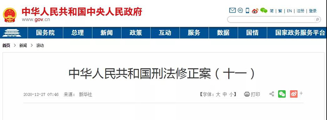 回顾2020年12月29日新华社报道消息,第十三届全国人民代表大会常务委员会第二十四次会议通过中华人民共和国刑法修正案(十一),自2021年3月1日起施行。