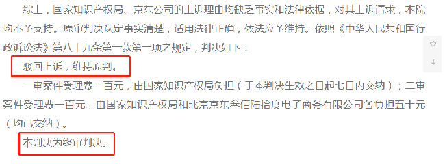2021年4月,京东和国知局分别上诉,近日,北京高院作出二审判决,支持北京知识产权法院作出的判决结论,维持原判结果。
