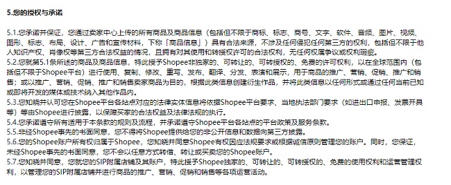 理由一,入驻平台没有要求提供销售当地商标。对于国内大平台,现在是不可能不提供相关的知识产权证明的,就算不是商标持有人,没有商标证书或者商标申请当中的证明,也需要提供商标授权书或者与商标所有人签订的一些许可协议。但是对于一些国外新兴平台,的确存在不需要提供相关知识产权证明的情况,但是这不代表出了问题平台会替卖家承担责任,平台最多也只会承担连带责任,具体条款可以参看平台的服务协议,如下面的截图。