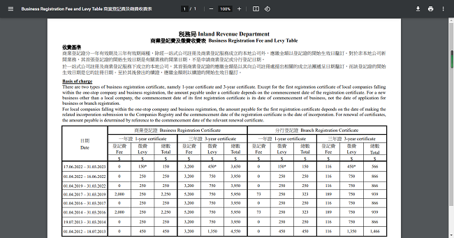 2.就每张登记证须缴付的金额,请参阅商业登记费及征费收费表。