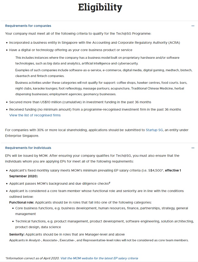 公司必须满足以下所有条件才能获得Tech@SG项目的资格: