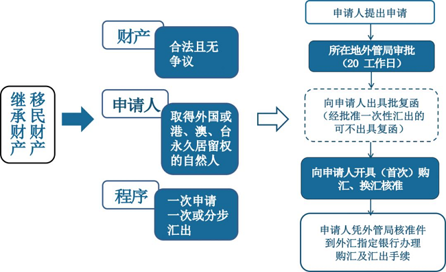 继承财产转移是指外国公民或香港、澳门特别行政区及中国台湾地区居民将依法在中国境内继承的遗产变现,通过指定银行购汇并汇出境外的行为。