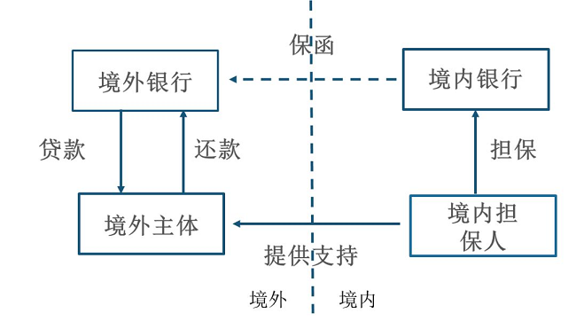 内保外贷是跨境担保方式的一种,具体指担保人注册地在境内、债务人和债权人注册地均在境外的跨境担保。内保外贷一般涉及四个法律主体:借款人、担保人以及境内分行、境内分行。其行为模式一般为:借款人向境外分行提出借款申请,由担保人将现金直接存入境内分行后,境内分行向境外分行提供保函或备用信用证,境外分行审核后再向借款人放款,其中,借款人和担保人一般具有一定的关联关系。而,担保人主要是银行或非银行金融机构和企业,另外,境内个人也可以作为担保人,参照境内非银行金融机构办理内保外贷业务。