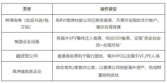 内地企业 → 香港控股公司(迁册)→ 境外客户/供应商;