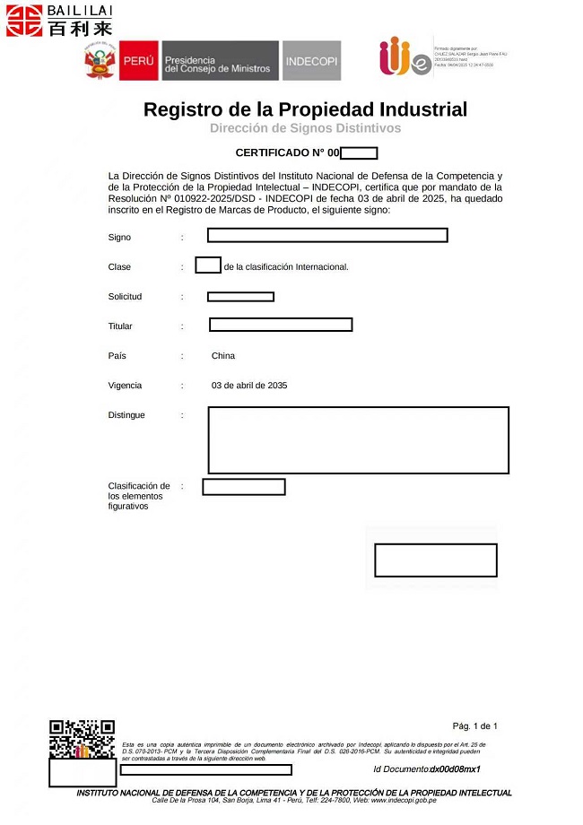 负责监管秘鲁商标的主要政府机构为秘鲁国家竞争和知识产权保护署(INDECOPI)。