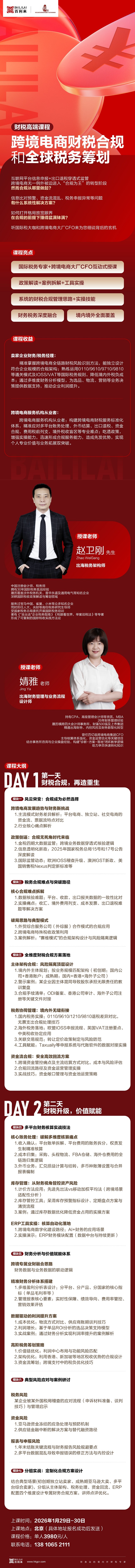 财税高端课程-跨境电商财税合规和全球税务筹划-火热报名中