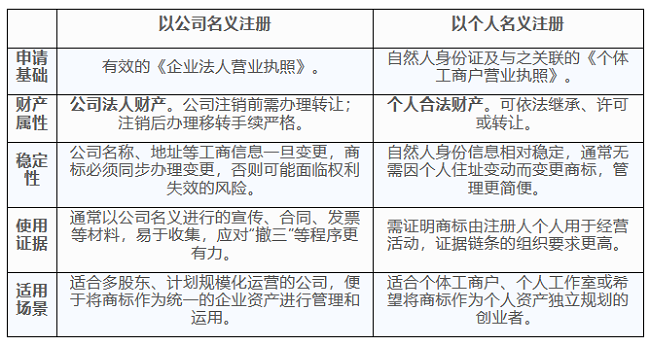 选择公司名义,更适合将商标深度绑定于企业品牌,追求规模化、组织化运营的商业模式。但需承担伴随公司信息变更而产生的管理成本和潜在风险。
